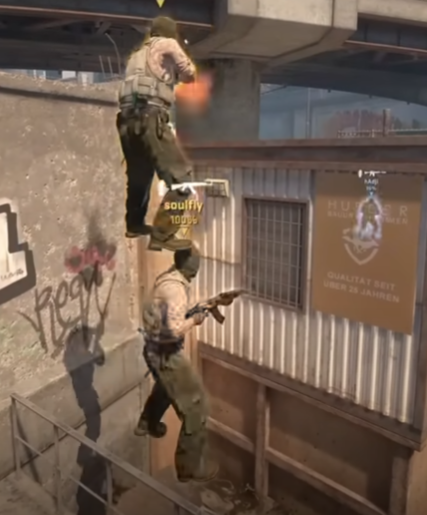 Take short control, and boosts on railing to maybe get a off-guard kill on B-player. Must be aware of Short and Connector push for this to work properly.